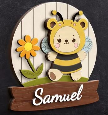 Buzz into crafting fun with our DIY Bee Bear Wall Sign Kit – a sweet and playful wooden craft featuring a cheerful bear in a bumblebee costume, complete with a flower and custom nameplate! This layered 3D sign is a charming way to personalize your child's space with color, character, and creativity.