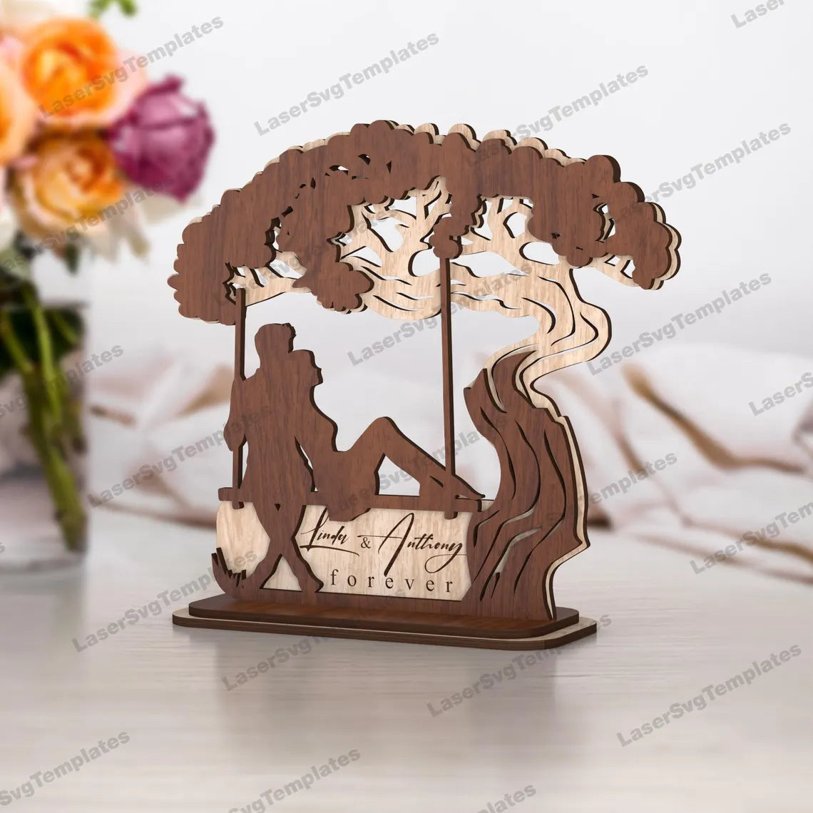Custom Made Couple on Swing Under Tree – Personalized Romantic Wooden Sign with Names