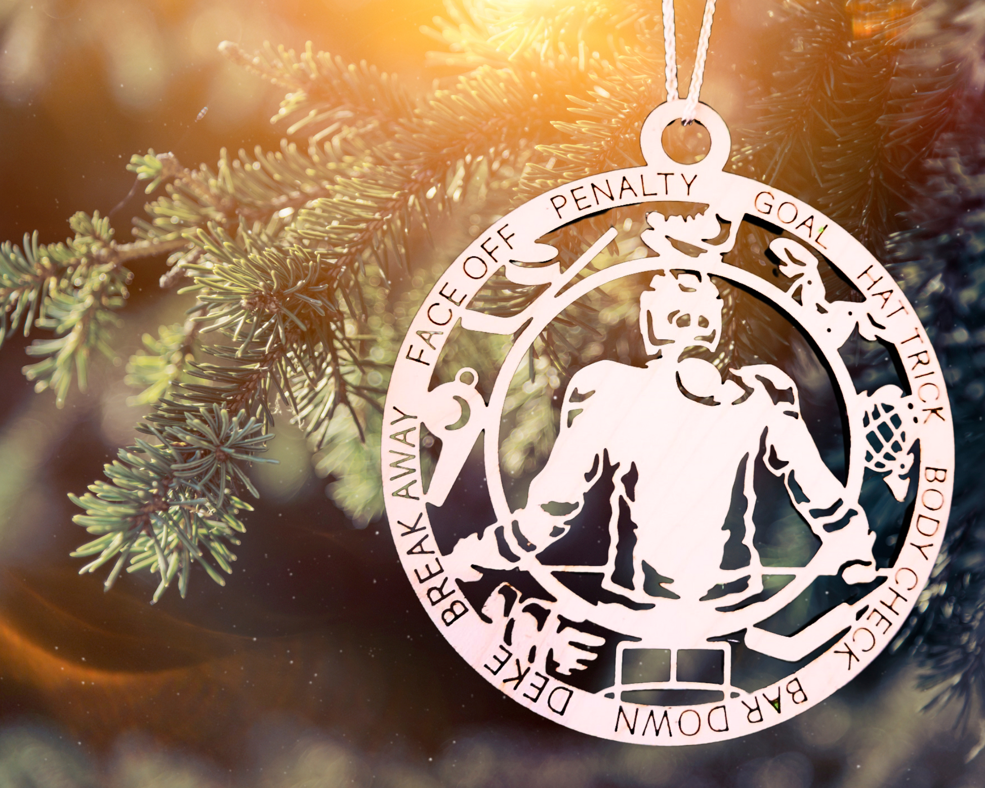Bring your love for the game to your holiday decor with our personalized wooden hockey ornaments. Crafted from high-quality, locally sourced New Brunswick wood, each ornament is laser-engraved with precise detail, making it the perfect addition to any hockey enthusiast’s Christmas tree.