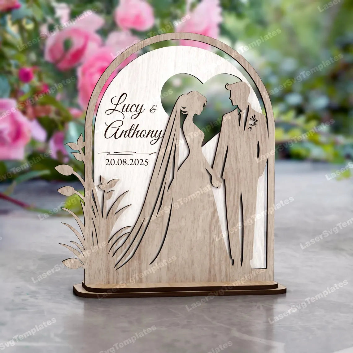 Personalized Bride & Groom Wedding Standee – Custom Name and Date Wooden Decor, Anniversary or Wedding Gift